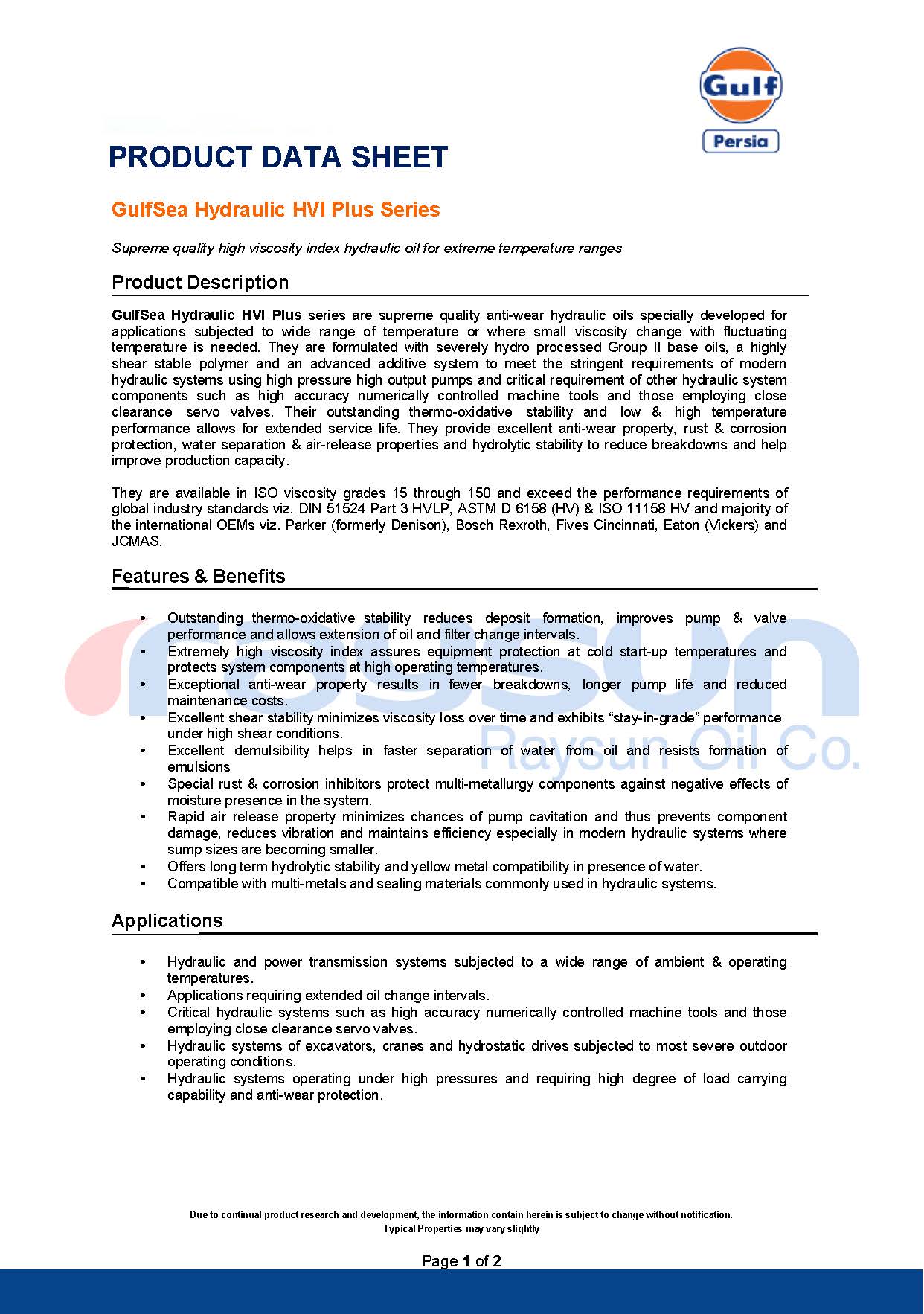 GulfSea Hydraulic HVI Plus Series